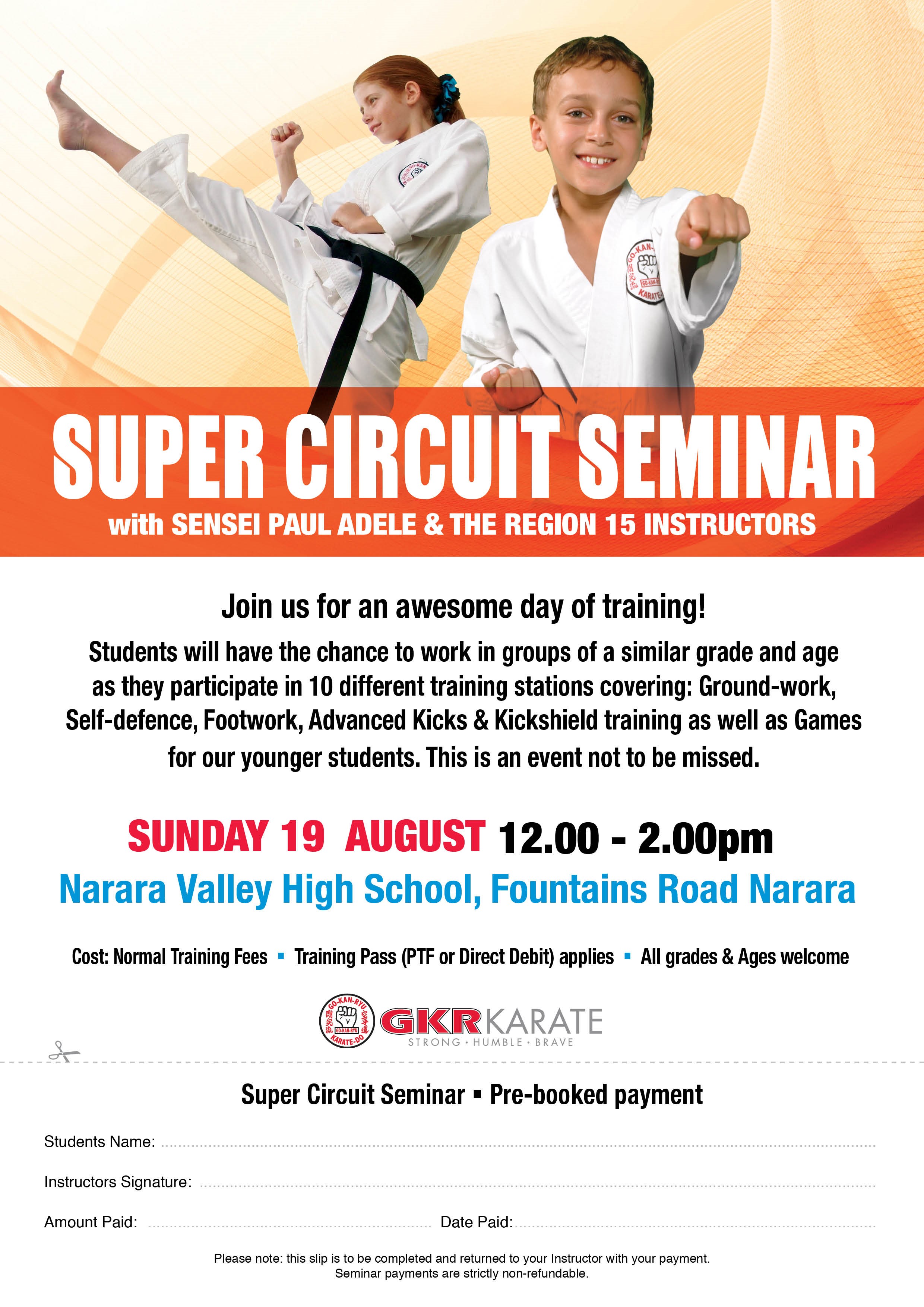 Students will have the chance to work in groups of a similar grade and age as they participate in 10 different training stations covering: Ground-work, Self-defence, Footwork, Advanced Kicks & Kickshield training as well as Games for our younger students. This is an event not to be missed!